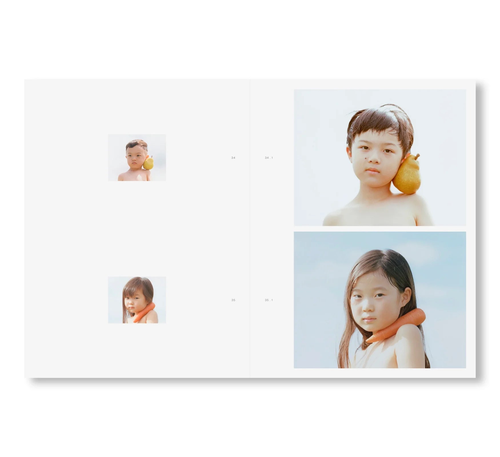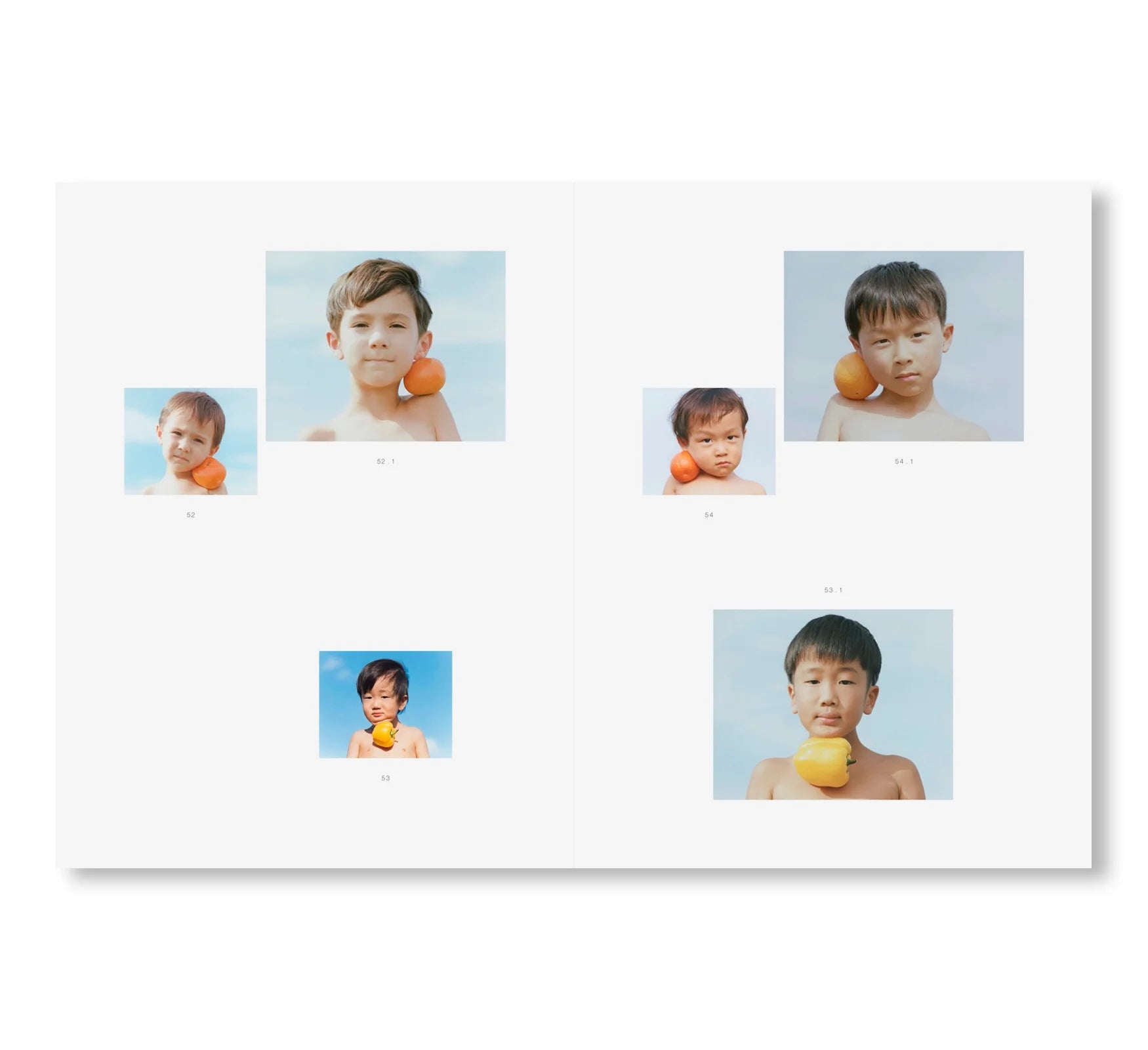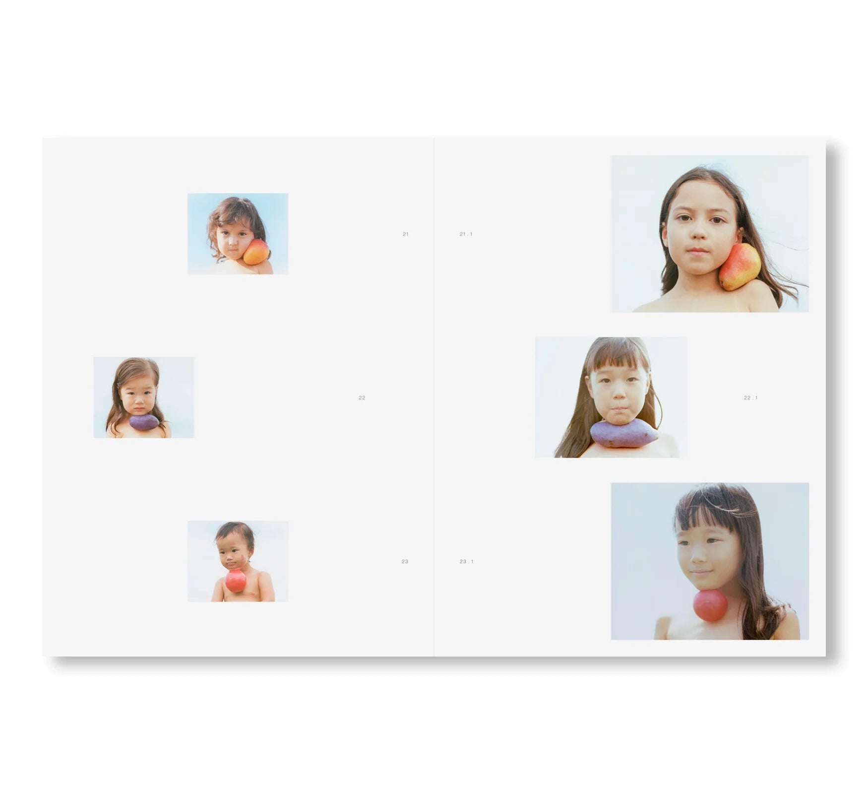 写真家、横浪修の作品集。作者は、長い時間をかけて、本能と自己意識のあいだにある繊細な境界線を静かにたどってきました。肩と顎のあいだで果物を支える子どもたち、その周囲を流れる空——幼少期の自発性に目を向けた試みとして始まったこのシリーズは、やがて自己意識が芽生えていく静かな過程を映し出すものへと広がっていきます。