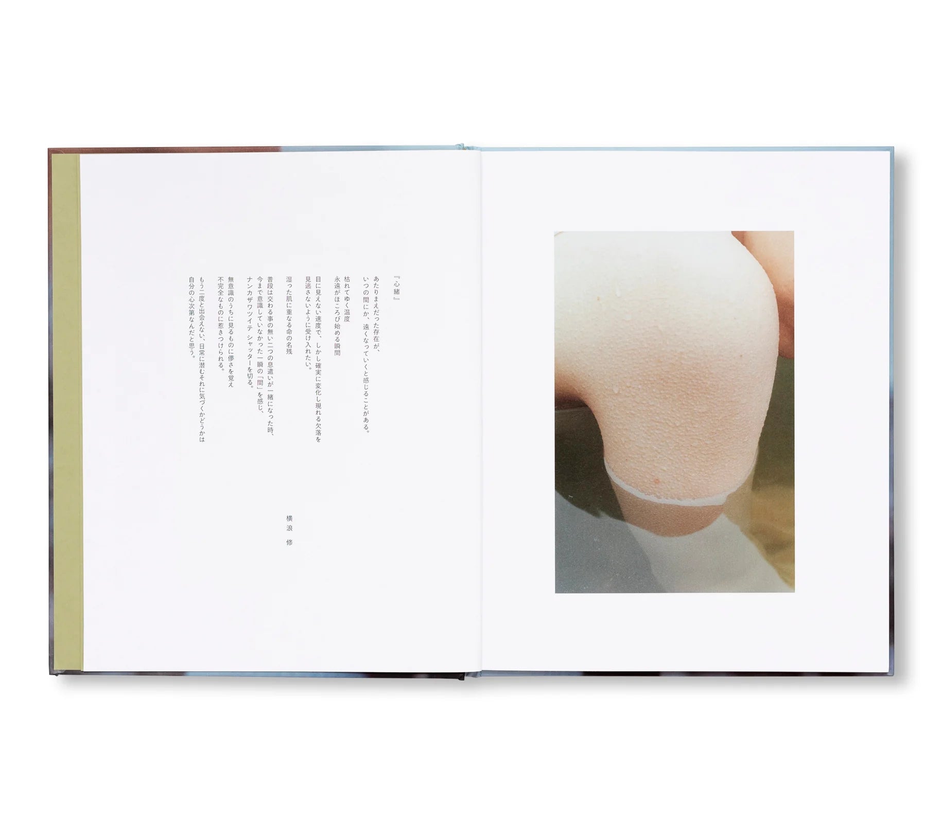 写真家 横浪修の作品集。本作は、私たちの日常のなかで見過ごされがちな、取るに足らない細部や、いつの間にか背景へと溶け込んでしまう小さな瞬間を捉えています。そこに映し出されているのは、自然の流れと存在の不確かさによって形づくられる、静かな変化の積み重ねです。