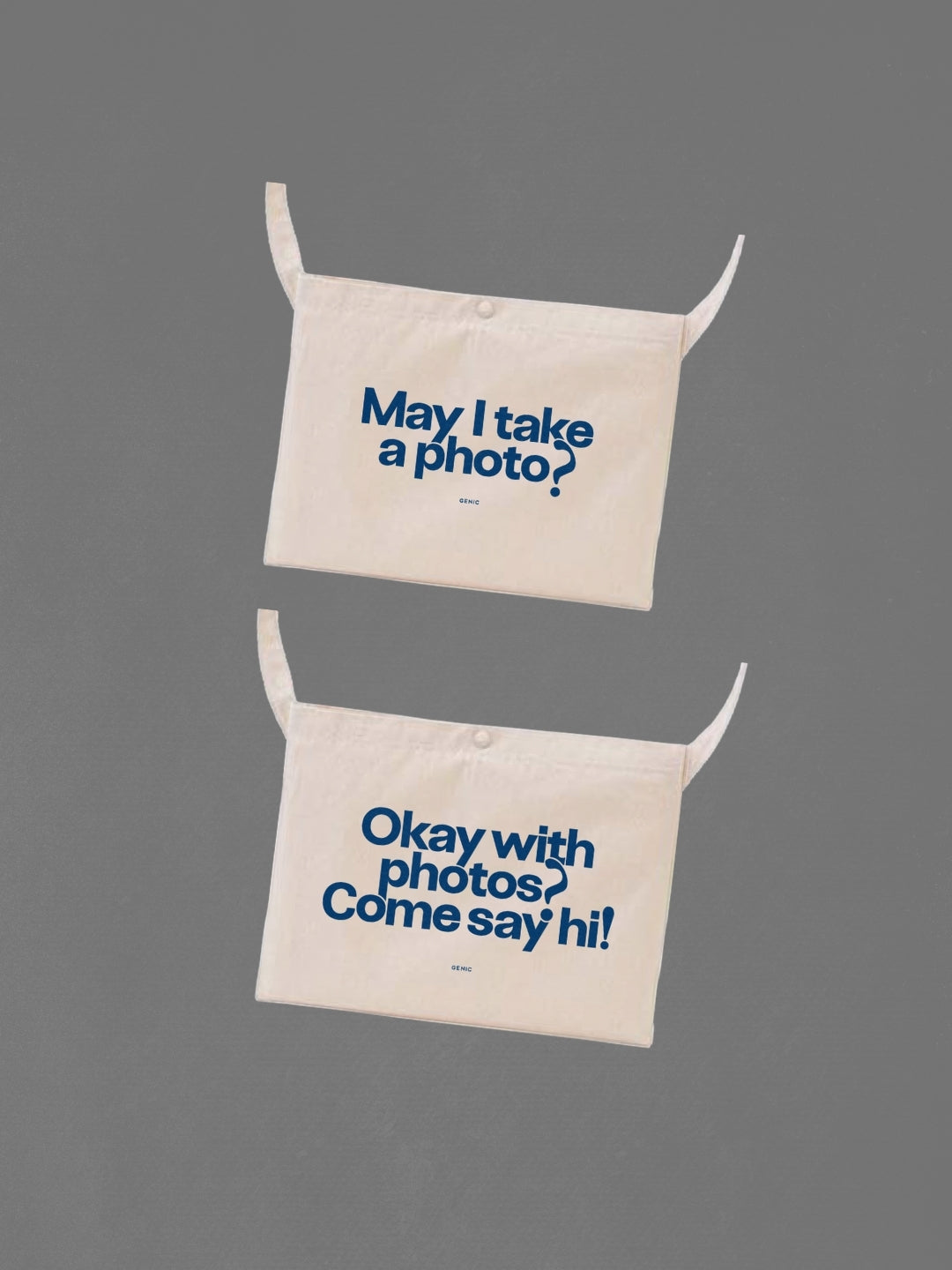 海外での撮影やガラス越しなど言葉が通じにくい場面で、このサコッシュを見せるだけで撮影してもよいかを確認できるシューティング・アイテム。イベントやフォトウォーク、撮影現場で使うのにも、とても便利なサイズ感です。